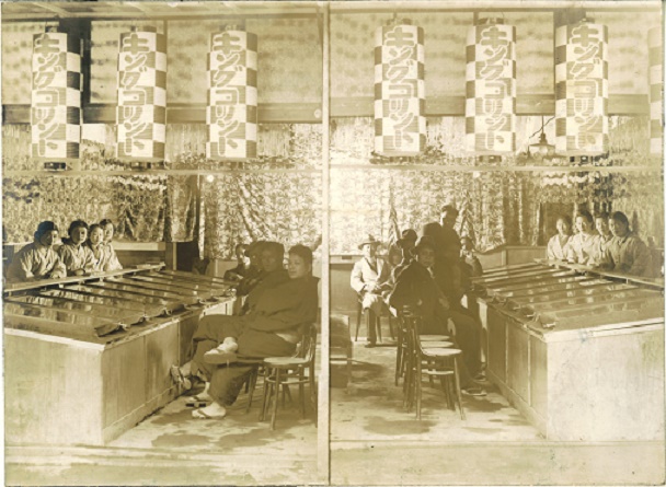 奥の看板には「長谷川式冷凍機関関東地方一手販売・アイスキャンデー・東京キング〇〇〇東部宣伝部出張」と、手前の看板は「今流行の最新〇〇・キングコリント・来よ見よ!楽し〇〇」なんか・・・色々と手広く遣っていた様です。「キングコリント」はスマートボール屋の屋号のようです。