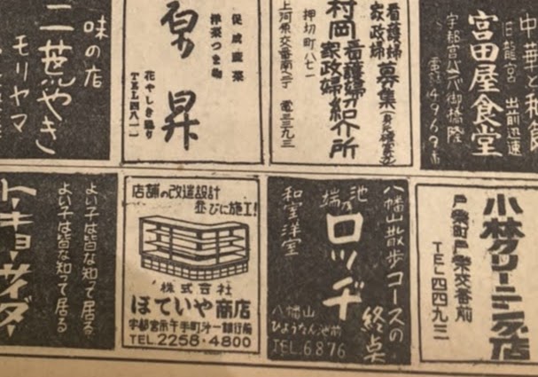 11.休憩所? 宇都宮を代表する公園、「八幡山公園」の「ひょうたん池」に貸しボートを何艘か浮かべて、貸していたそうです。さらにその横には、「ロッジ」と言う休憩所?を経営し、映画館のビラに「八幡山散歩コースの終点 池の端ロッヂ」と言うキャッチコピーで宣伝していた様です。(当時の八幡山公園は、若者たちのデートコースとして有名だった様です。)